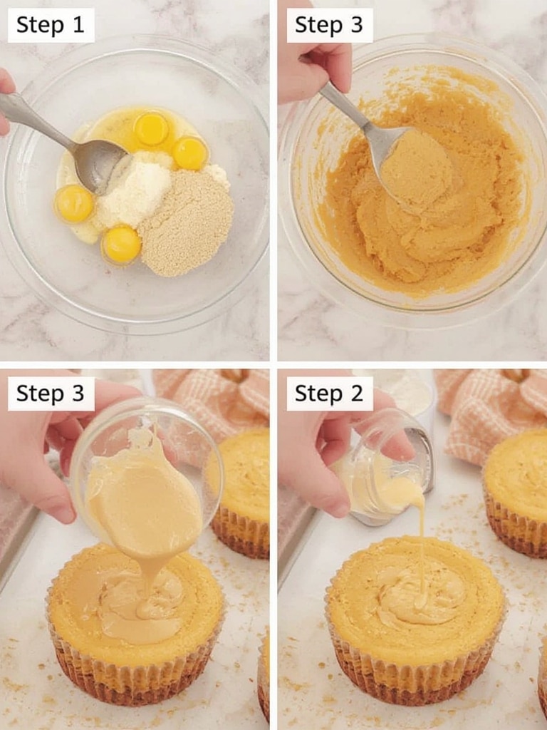 Line a standard 12-cup muffin tin with paper liners or use a specialized mini cheesecake pan. Preheat your oven to 325°F (165°C). Pro tip: Spray the paper liners lightly with cooking spray to prevent sticking.