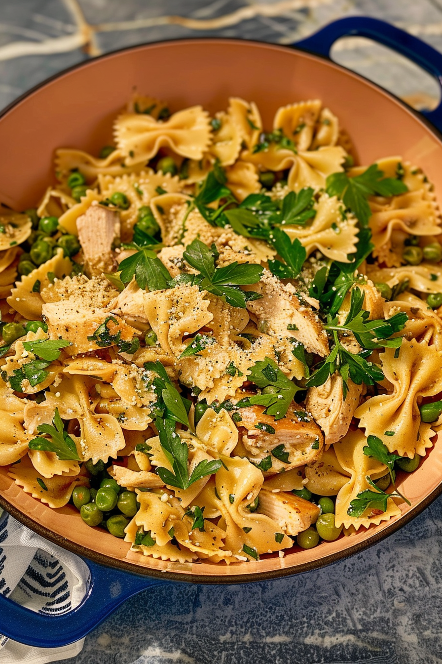 Spring Herb-Chicken Farfalle shines because it balances three key elements: bold herbs, tender chicken, and perfectly al dente pasta. The garlic-and-herb spreadable cheese creates a rich, velvety sauce without heavy dairy. Ready in 30 minutes, it’s ideal for spring evenings when fresh flavors matter most.